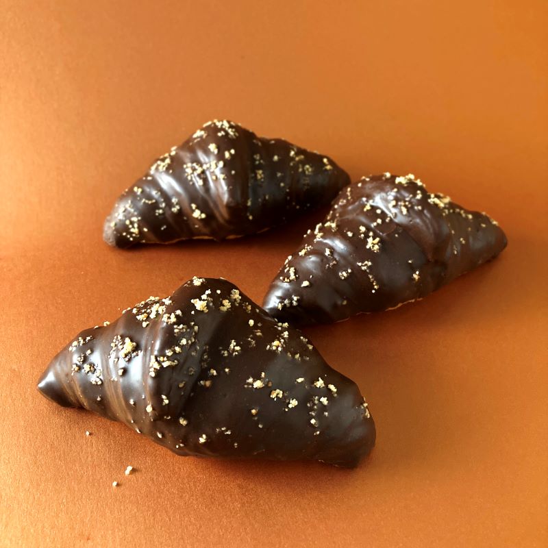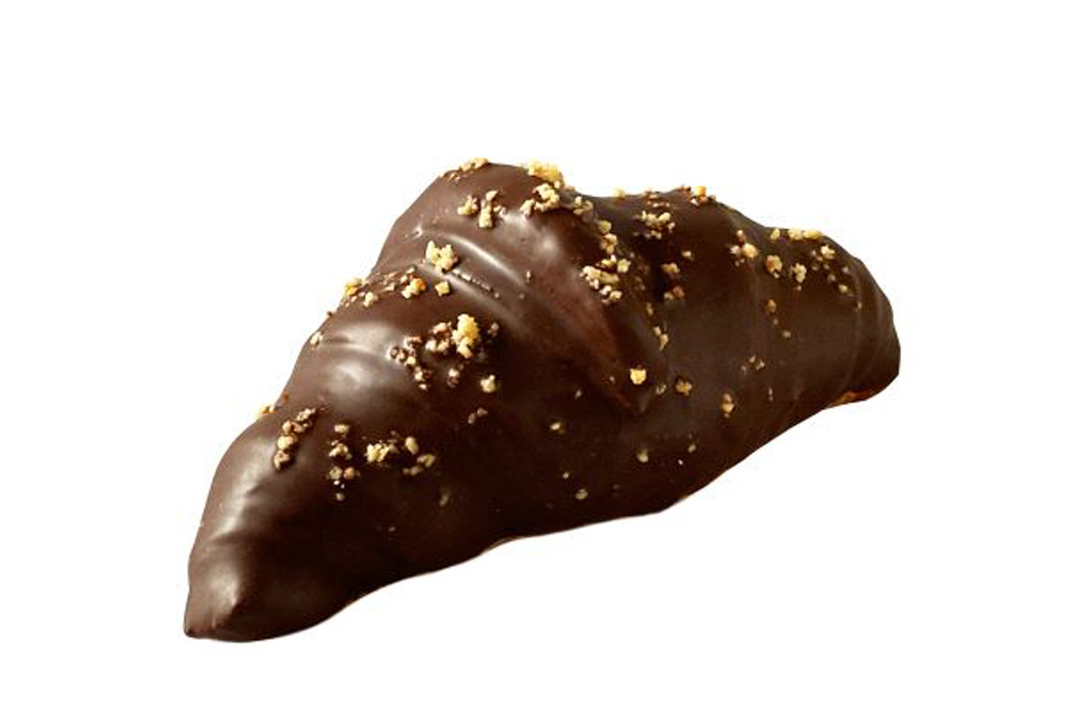 さっくりと焼きあげたクロワッサンにアーモンドのプラリネを混ぜ込んだチョコレートをたっぷりと纏わせました。