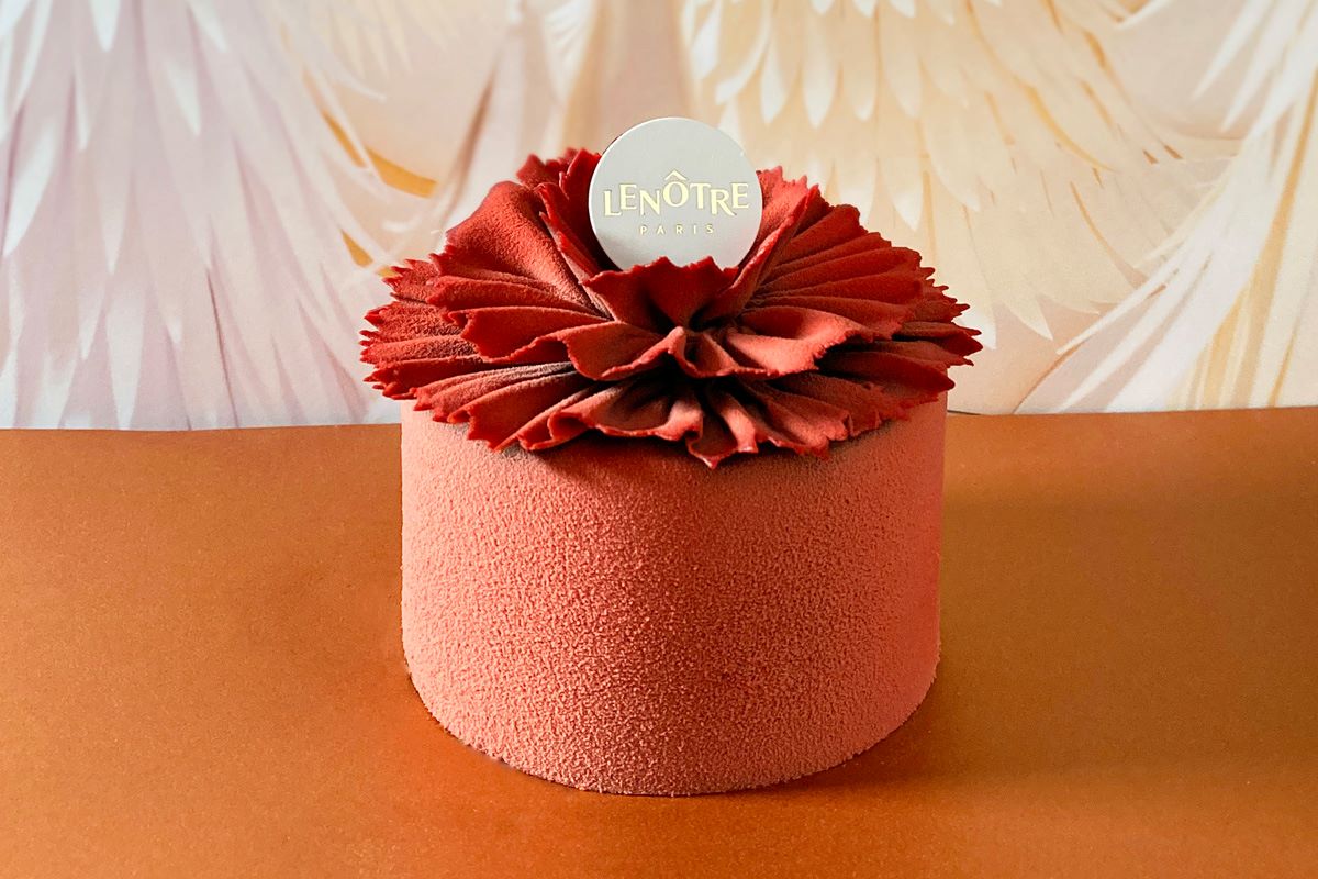 スペシャリテ、フイユ・ドトンヌの冬季限定のお二人様用。 ベリー系の紅茶で香りづけしたチョコレートムースとメレンゲ、フランボワーズのジュレで仕上げました。軽やかな食感と華やかな香りをお楽しみいただけます。
