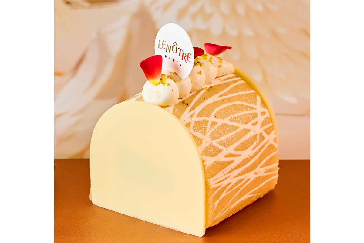 アーモンド風味のチョコレートクランチ、しっとりしたアーモンド風味のビスキュイ、フランボワーズのジュレ、濃厚なクリームチーズムース、アーモンドペーストを重ねました。甘酸っぱいフランボワーズが華やかに広がり、軽やかな余韻を奏でます。