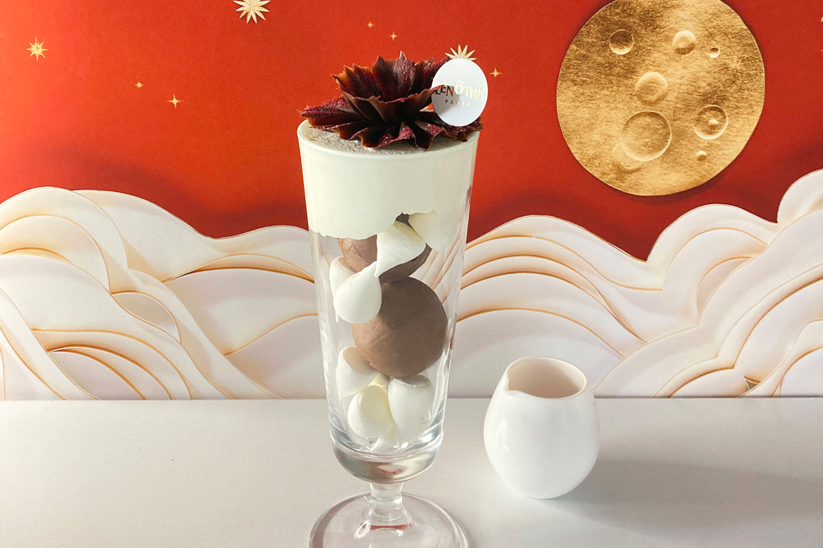 ルノートルで人気のパルフェ・フイユ・ドトンヌのクリスマス限定仕様。 香り高いチョコレートアイス、メレンゲ、パリパリのチョコレートに上品な酸味と甘みのフランボワーズソースを合わせて、軽やかな味わいに仕立てました。